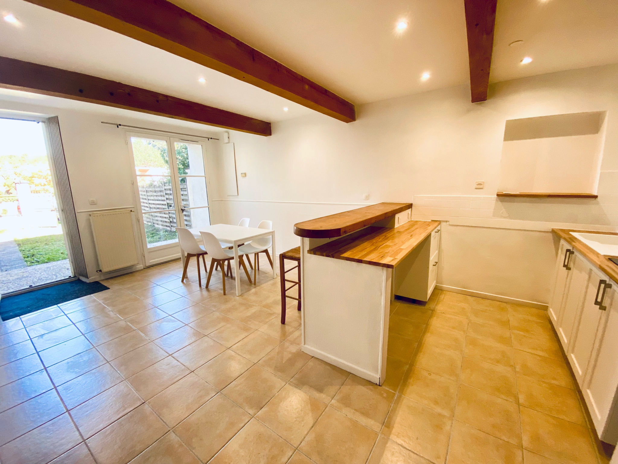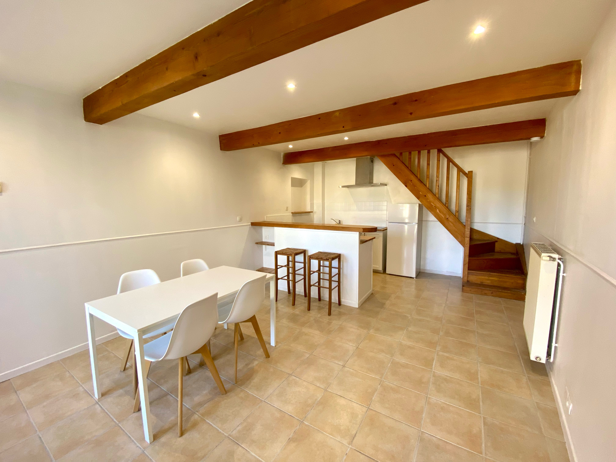 Maison rénovée avec goût de type T2 MEUBLEE d'une superficie de 42 m2 environ comprenant, au rdc, une pièce de vie avec cuisine ouverte et à l'étage, un palier desservant une chambre et une salle de bain avec WC.