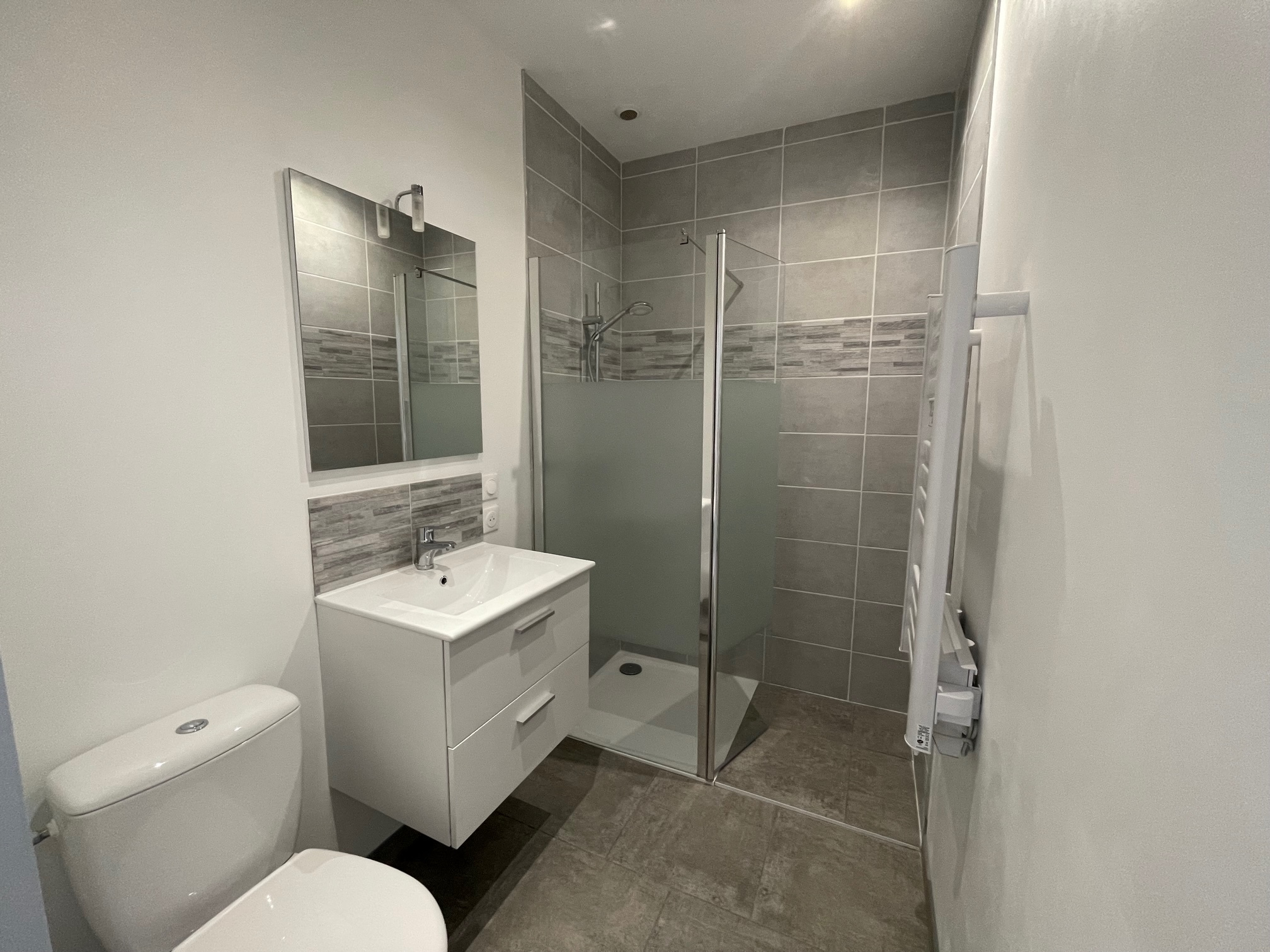 Maison de type 3 entièrement rénovée : salon-séjour, cuisine aménagée et équipée (hotte), salle d'eau, WC, 2 chambres à l'étage, cour.<BR>Surface habitable : 69.82m2<BR>Loyer : 850? par mois charges comprises<BR>Dont 0? par mois de ...