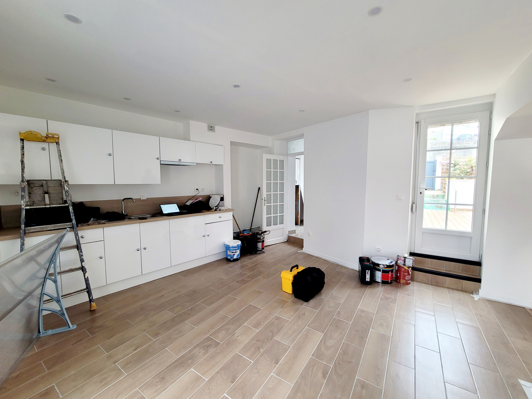 Maison rénovée récemment, lumineuse, située entre les marais et le centre ville, comprenant une pièce de vie ouverte sur une cuisine équipée, une salle de bains, un wc et 2 chambres. une dépendance mais PAS D'EXTERIEUR. Chauffage électrique.