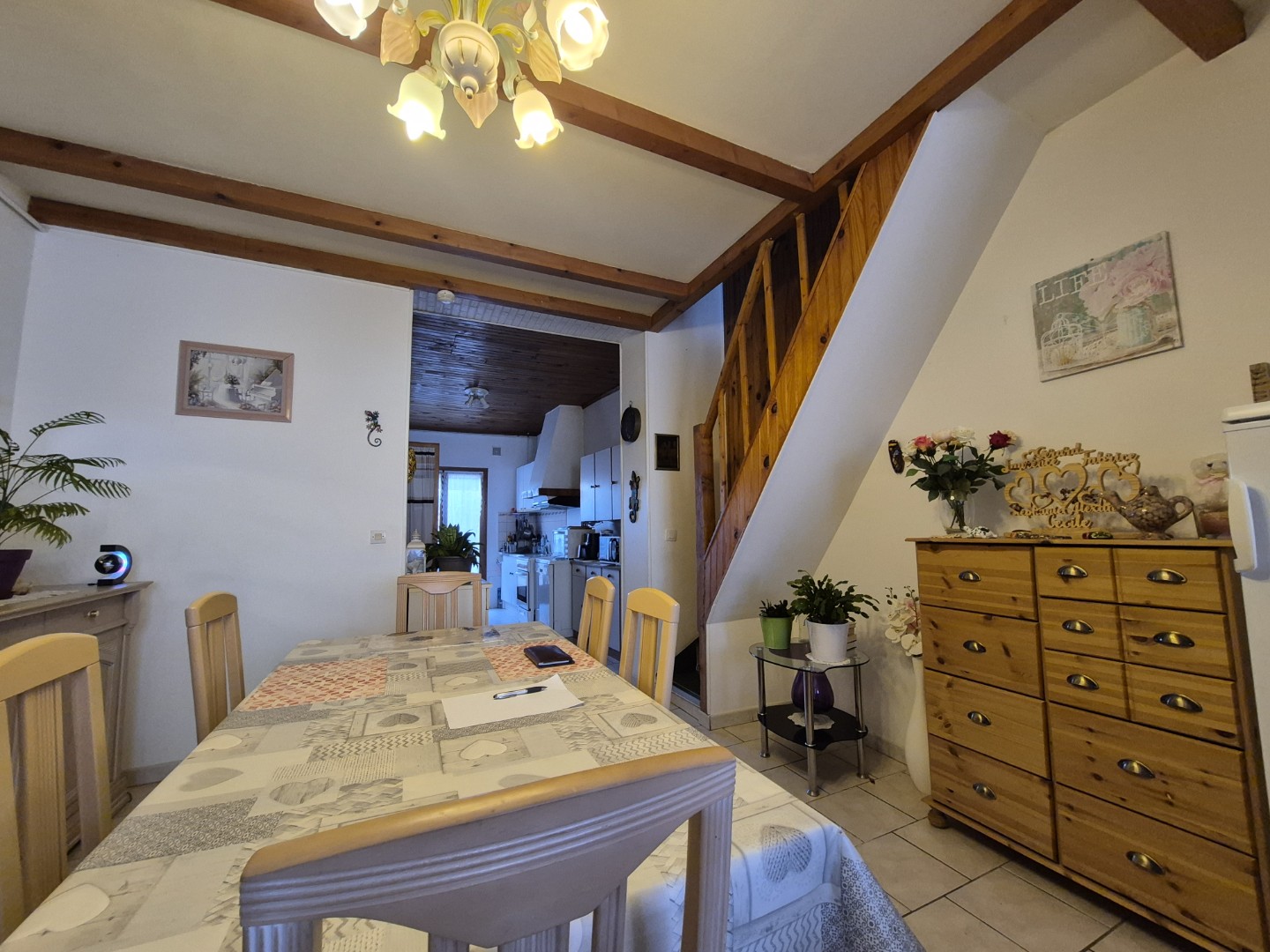 Maison semi mitoyenne dans un secteur calme comprenant un salon, une salle à manger, une cuisine non équipée, une salle d'eau et WC séparé. A l'étage, 2 chambres. Cave. La maison dispose d'un jardin clôturé et d'un garage. Chauffage au gaz ...