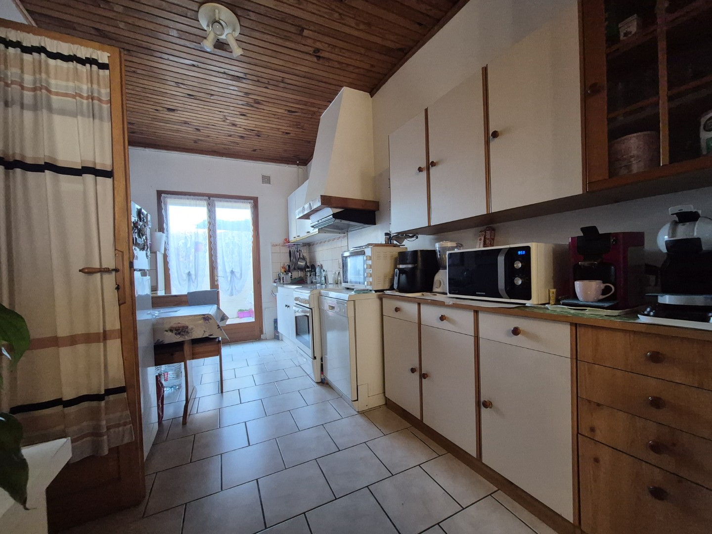 Maison comprenant une cuisine meublée et équipée ( plaque gaz et hotte ) un grand salon séjour , un espace laverie, une salle de bain avec WC, A l'étage une chambre et un bureau possibilité de stationner 2 à 3 véhicules devant la maison Pas de jardin et p...