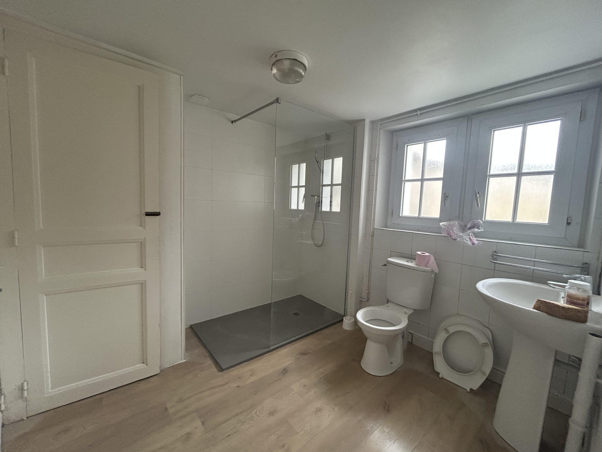 Au 1er étage : une chambre de 15m² avec placards, une salle de bains avec baignoire, douche et double vasque. WC a...