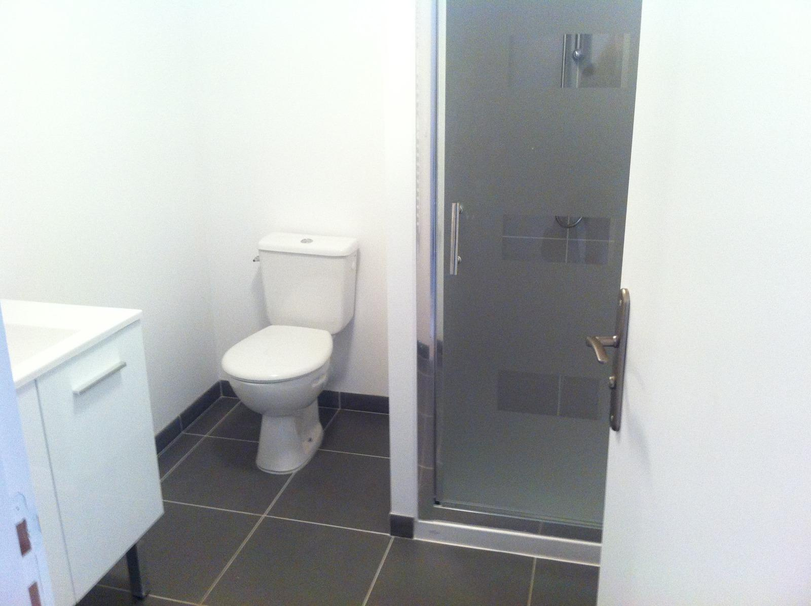 Chambre meublée avec placard, un bureau et une salle d'eau privative.