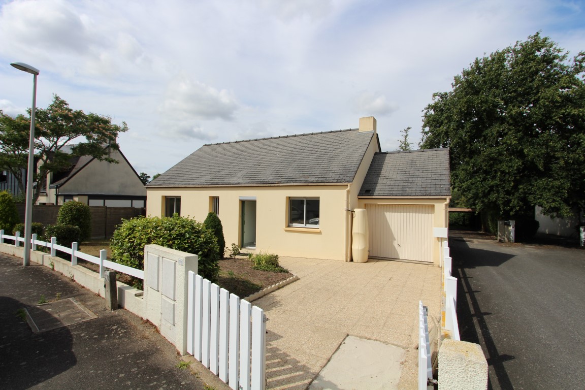 CARQUEFOU, quartier Le Charbonneau, maison individuelle de plein pied de type 3 comprenant : une entrée avec placard, un salon-séjour de 28 m² donnant sur un jardin, une cuisine fermée équipée (plaque induction, hotte et four), un dégagement, deux chambres don...