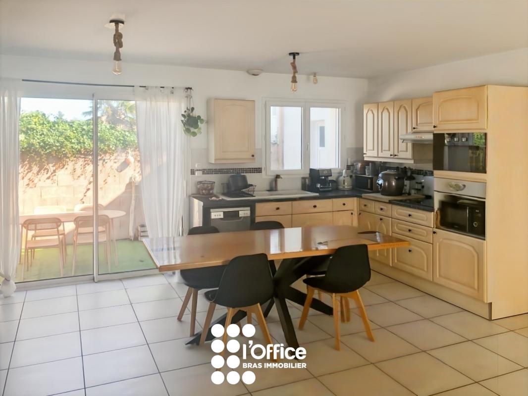 Découvrez cette maison de plain-pied de 84.55 m² située au calme, elle se compose d'un séjour lumineux ouvert sur une cuisine aménagée et équipée (meubles hauts et bas, plaque de cuisson, hotte aspirante) donnant ...