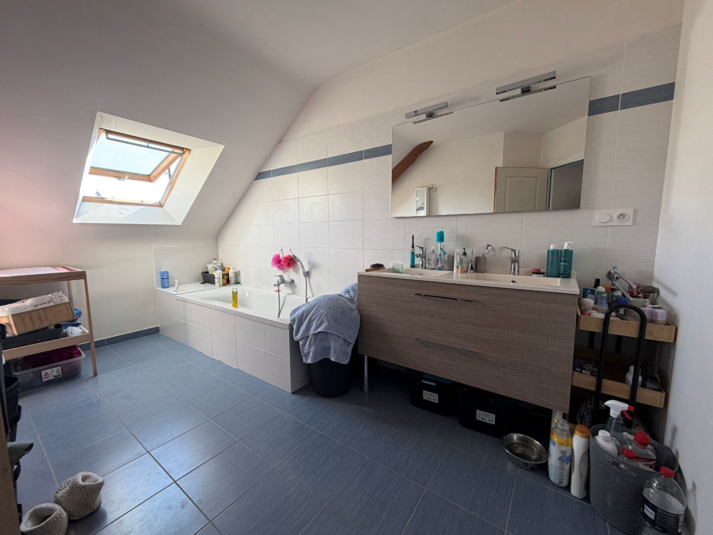 Grande et belle maison d'environ 195 m² sur un terrain arboré, comprenant : un hall d'entrée, un séjour plafond cathédrale avec insert, une cuisine aménagée et équipée, un wc.