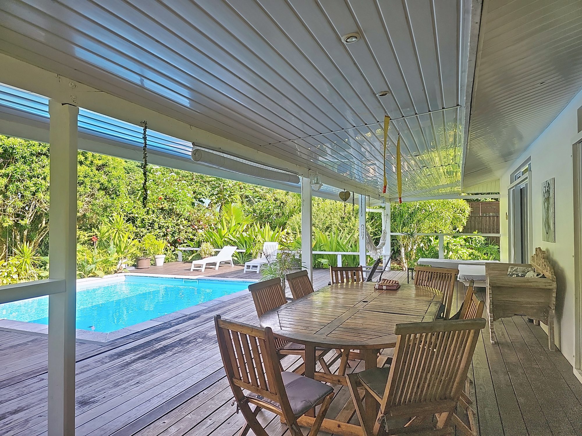Charmante maison style chalet en dur, tropicale et très cosy. Ce petit bijou meublé et équipé offre un havre de paix verdoyant et clôturé, alliant charme, confort et sécurité pour toute la famille