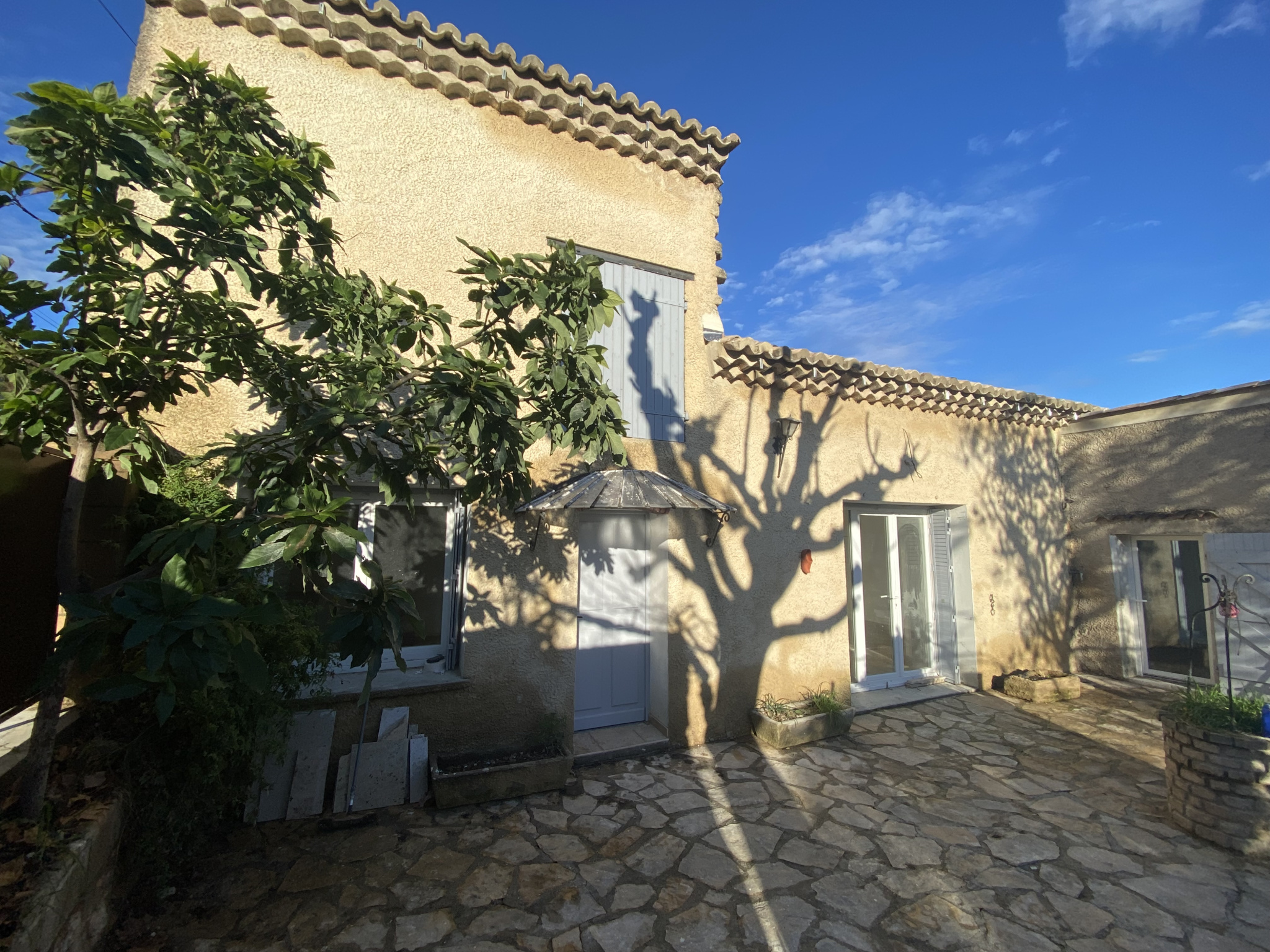 Jolie maison type 5 d'une surface de 130 m2 environ avec climatisation, à la campagne avec terrasse et jardin récemment rénovée comprenant une cuisine aménagée, un séjour, 3 chambres, un bureau, un dressing, salle d'eau, wc et buanderie.