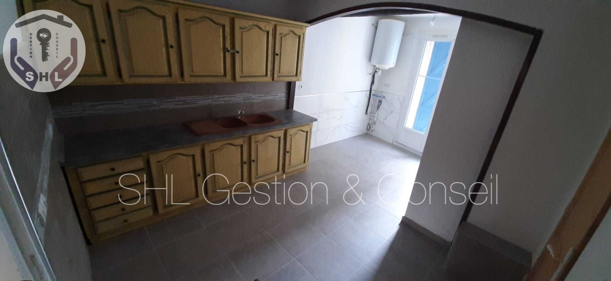 Appartement composé d'un séjour avec placards, une cuisine aménagée, une salle d'eau, une chambre