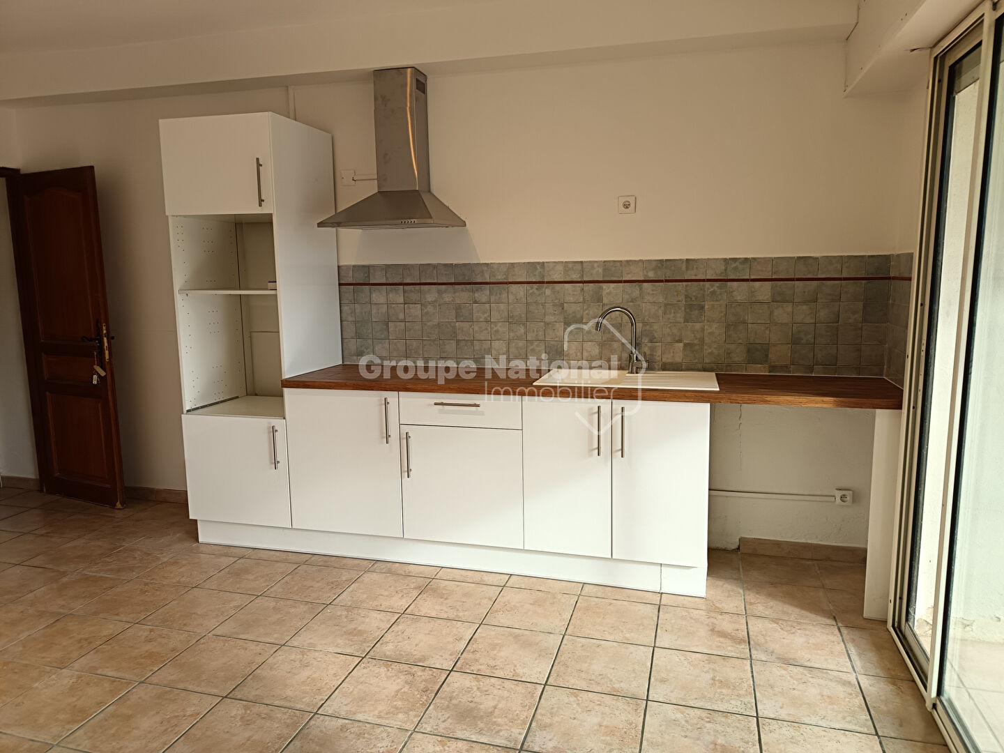 Un séjour ouvert sur un coin cuisine, un WC avec lave mains, une terrasse donnant accès au jardin...