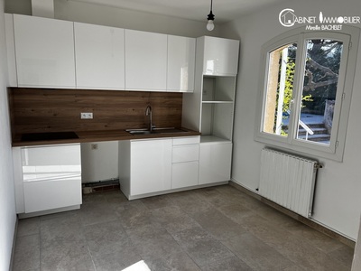 Quartier de la Gare, L'Agence de Saint Jean vous propose à la location cette ancienne villa entièrement climatisée pleine de charme de 110m² composée d'un séjour de 33m² avec cuisine indépendante, cellier, de deux chambres et un grand bureau, salle ...