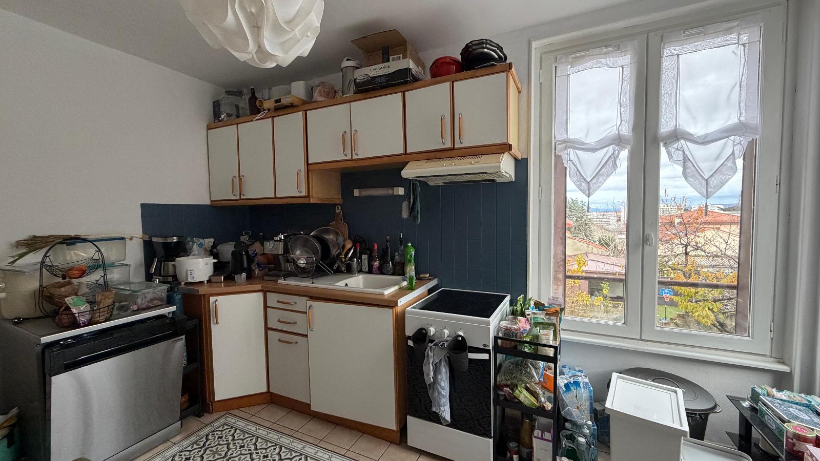 Elle se compose d'une entrée avec placard - d'un cuisine semi-équipée (four - plaque de cuisson - hotte) ouverte sur séjour et donnant sur la terrasse - de deux chambres ...
