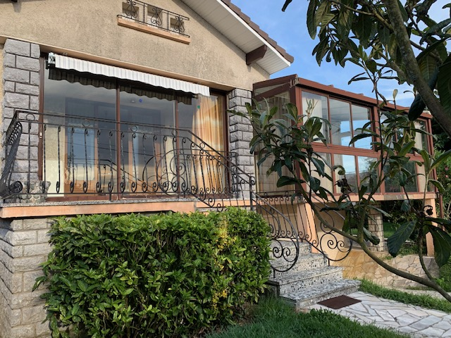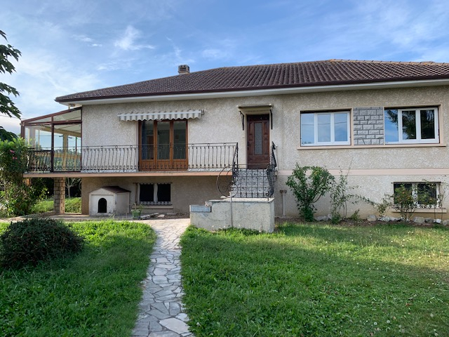 Cette jolie maison individuelle sur sous sol propose une entrée, un séjour avec véranda climatisée, une cuisine meublée et équipée avec cheminée et insert, quatre chambres, une salle de bains, un wc, balcon.