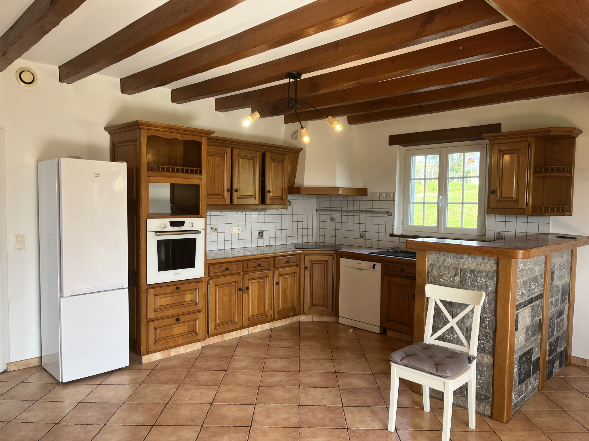 Maison neuve de qualité, composée d'un vaste séjour donnant sur une cuisine équipée et aménagée (plaque, hotte, four, micro-ondes, lave-vaisselle, frigo/congel, table, meubles), 2 chambres, wc indépendants, 1 salle de bains/wc, buanderie au rez-de-chaussé...