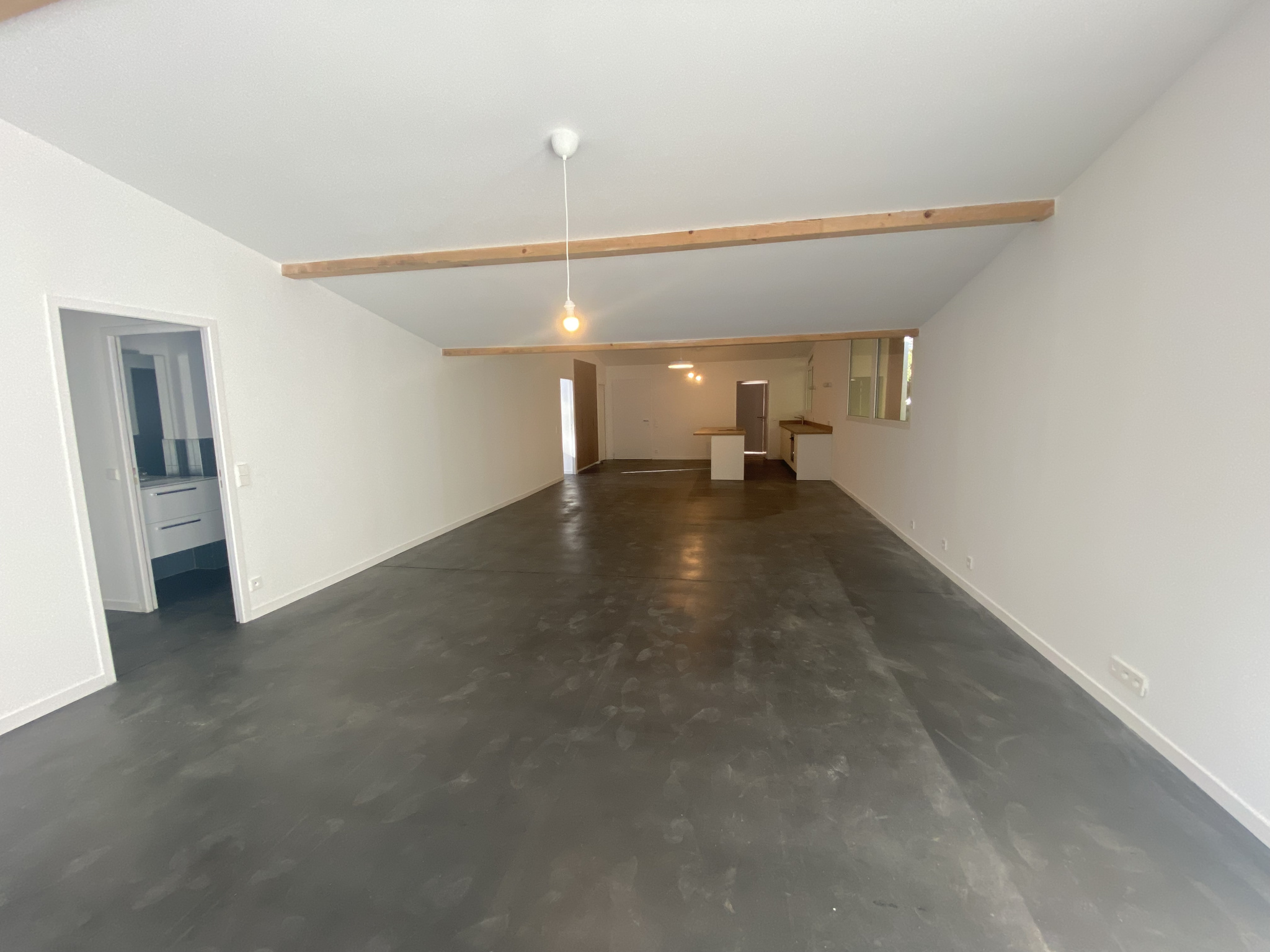 Maison contemporaine entièrement de plain-pied, se composant d'un grand séjour avec cuisine ouverte bien aménagée et équipée, de 3 chambres, 2 salles d'eau.