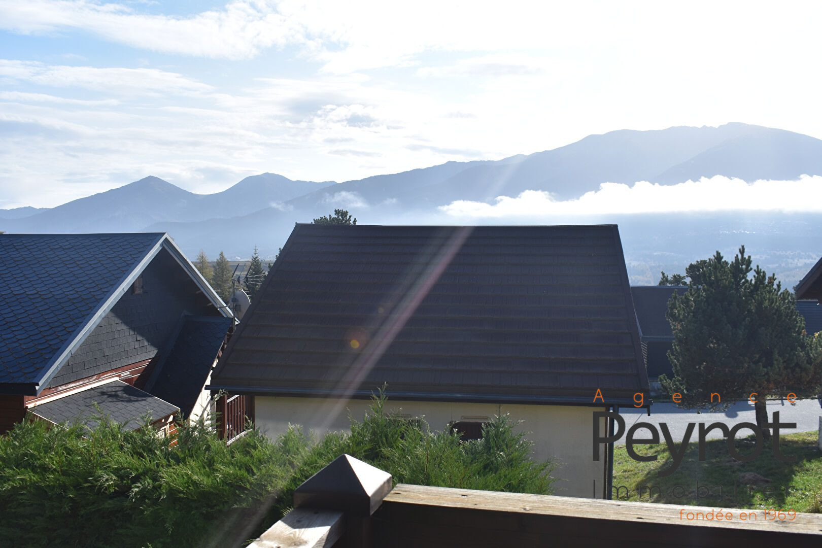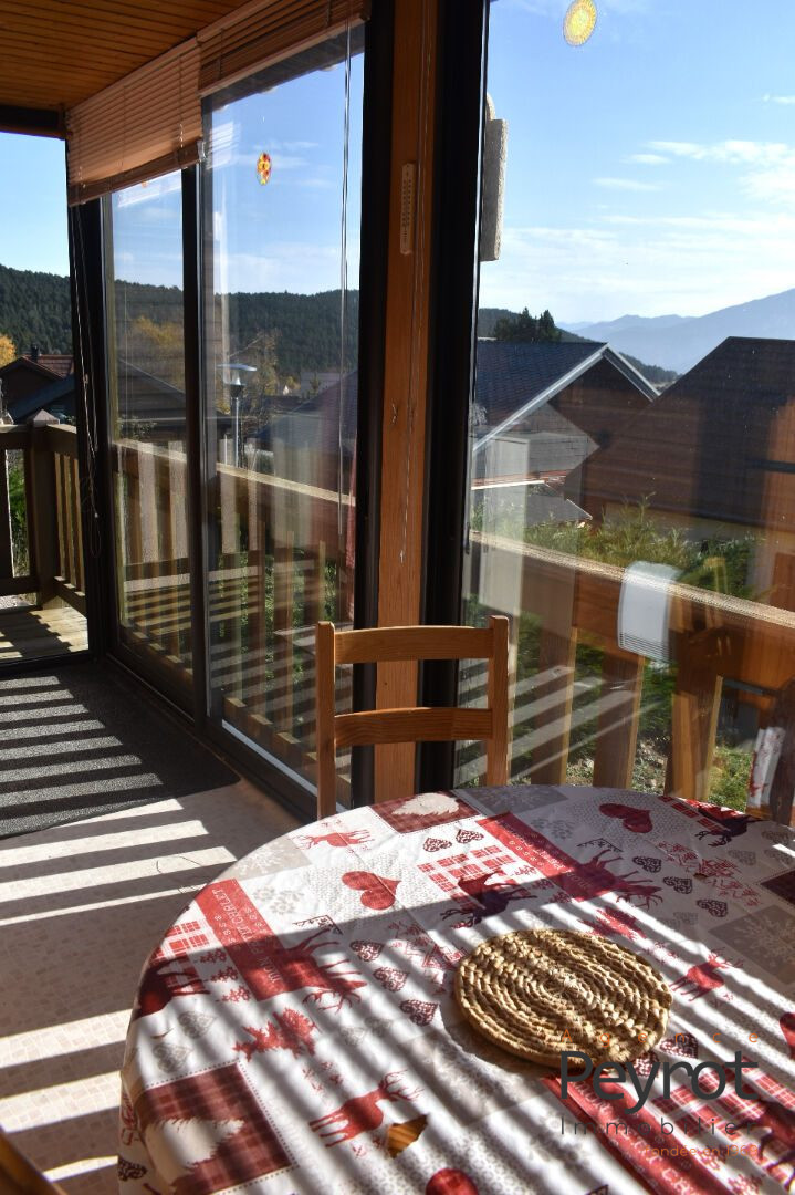 Ce chalet plein sud est composé d'une véranda avec une vue sur la chaîne des Pyrénées, qui am...