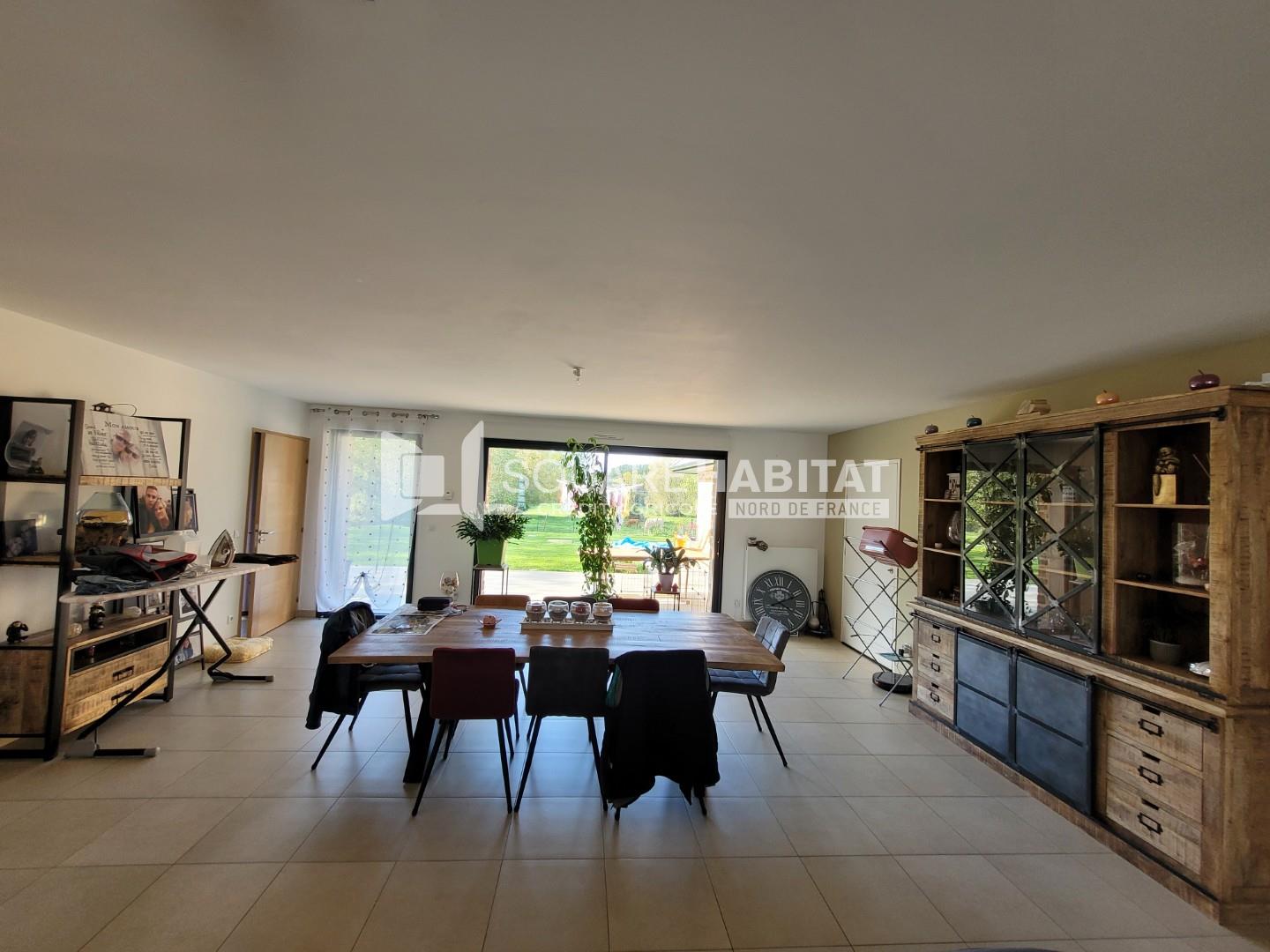 Maison individuelle sur RENTY, comprenant une entrée, un grand séjour/salon, une cuisine séparée aménagée et équipée, une chambre au RDC avec salle d'eau, WC, à l'étage un solarium, une salle de bains, un WC, 3 chambres, un garage, une buanderie, une...