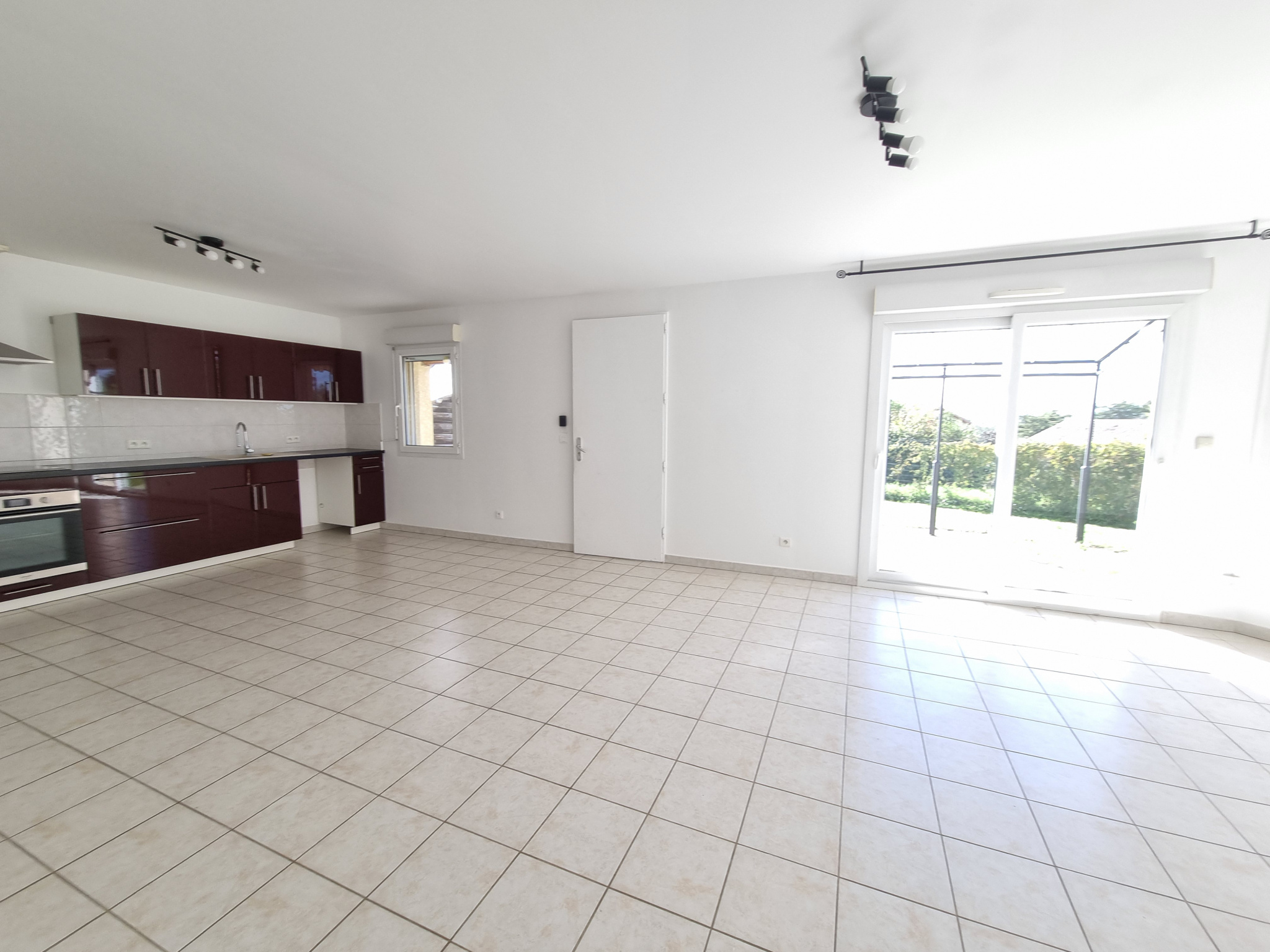 Cette maison mesure environ 72 m2 et offre un très grand espace de vie avec cuisine équipée, deux chambres avec placard, salle d'eau, wc, buanderie et garage.
