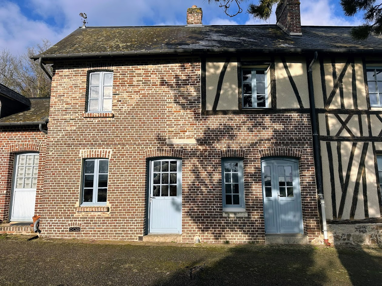 Dans bel ensemble immobilier , jolie maison Briques et colombages, divisée au RdeC: cuisine, salle/salon à l'ét. Couloir, 2 chambres, SdeB, WC