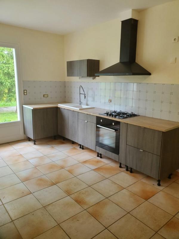 Pour les amoureux de la nature, corps de ferme entièrement rénové, avec l'ancien pressoir, comprenant spacieuse pièce de vie, salon, cuisine équipée (plaque, four, hotte, placards), quatre chambres, salle de bains complète (douche + baignoire), wc, buande...