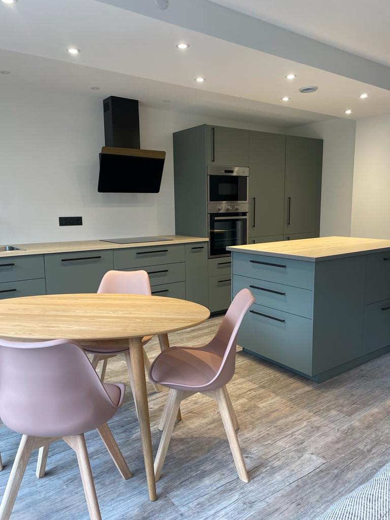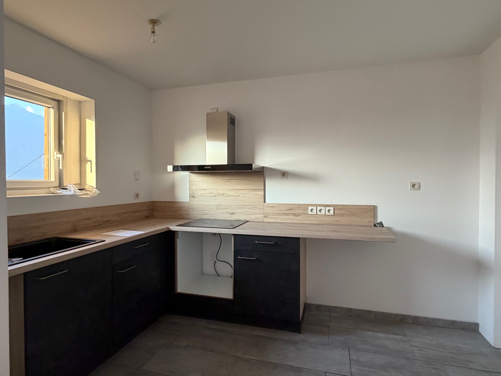 Au 1er niveau : Cuisine aménagée ouverte sur séjour et WC.