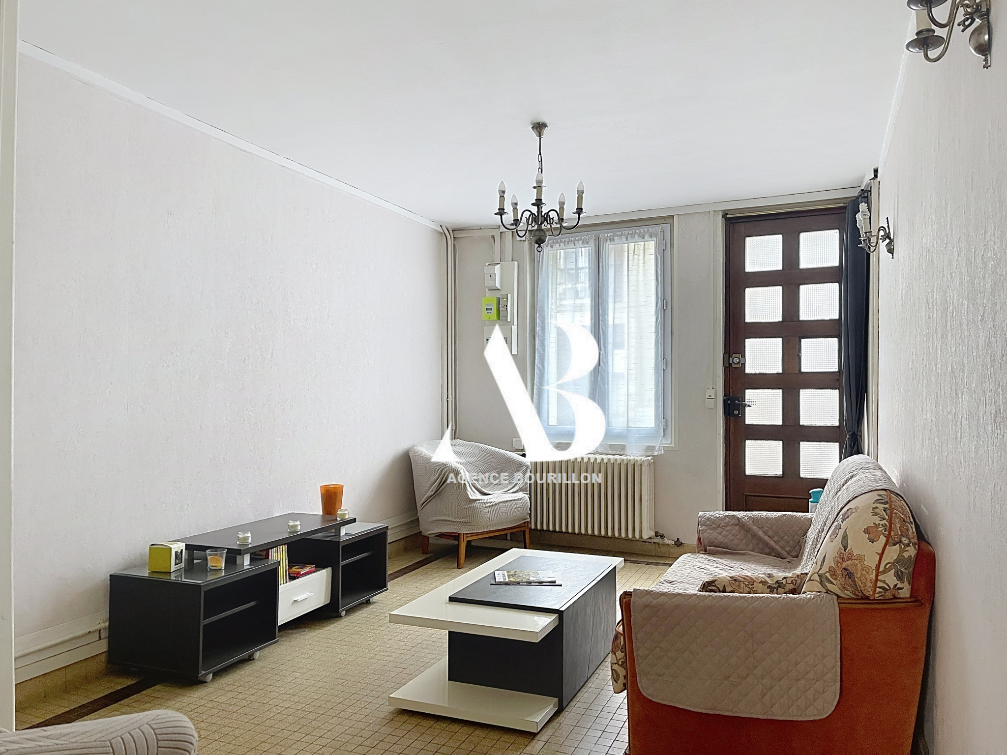 A BRAY SUR SEINE, maison avec courette comprenant : Entrée sur séjour ouvert sur cuisine, salle d'eau et wc. Etage : Deux chambres, wc.