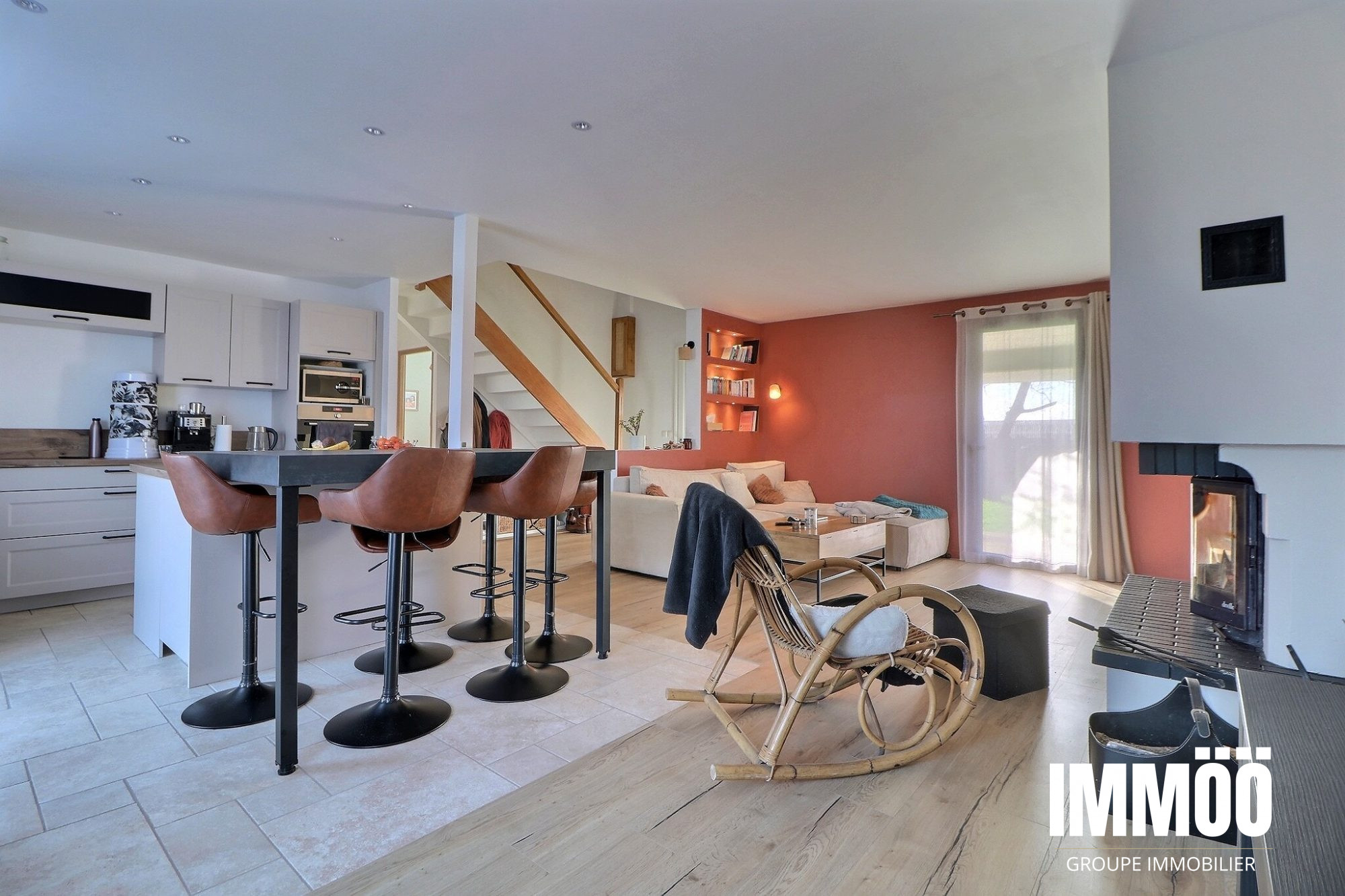 - Une grande salle avec espace salon et cuisine ouverte