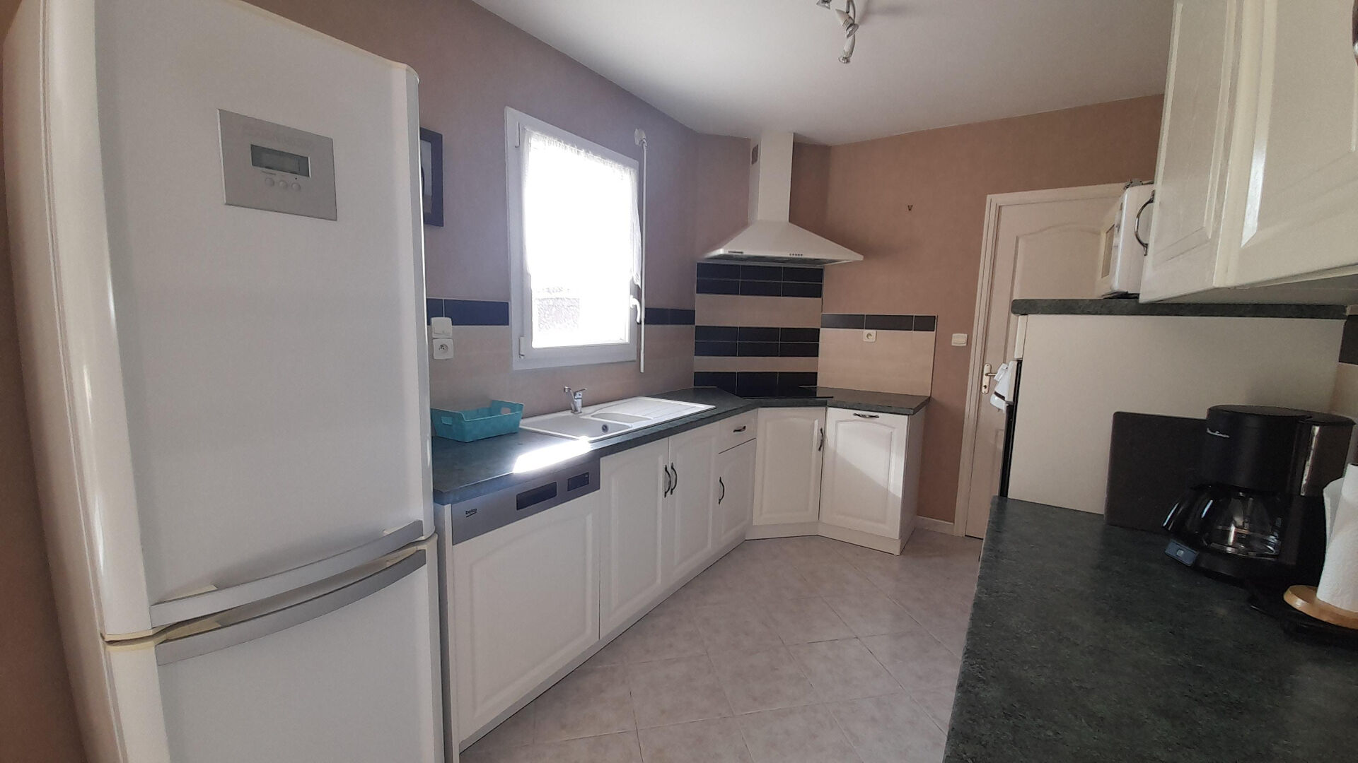 A LOUER - Maison T6 Meublée comprenant une pièce de vie lumineuse avec un poêle à bois, cuisine ouverte aménagée et équipées, une chambre au rez-de-chaussée avec une salle d'eau privative et à l'étage 3 chambres et une salle de bain. Un garage. Un ja...