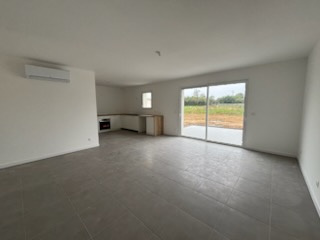 une entrée, un séjour, une cuisine ouverte aménagée équipée (plaque de cuisson, hotte, four), 3 chambres avec placards, une salle de d'eau et un wc.