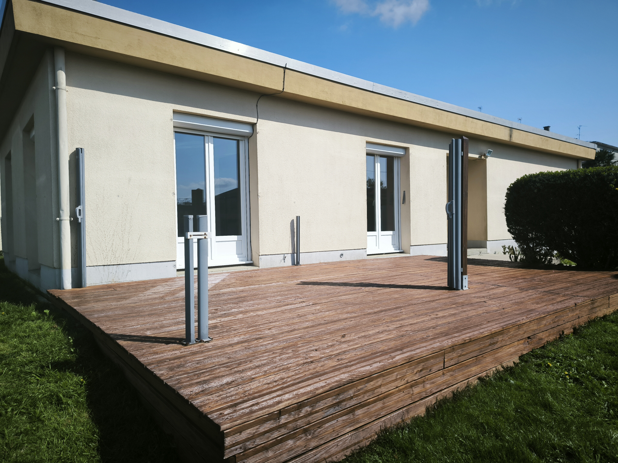 Proximité immédiate du centre-ville, maison de 90 m2 sur sous-sol complet, comprenant séjour/salon ouvert sur cuisine aménagée et équipée (plaque / four), deux chambres. Le tout sur un terrain d'environ 700m2. Chauffage fuel. Disponible : dès maintenant