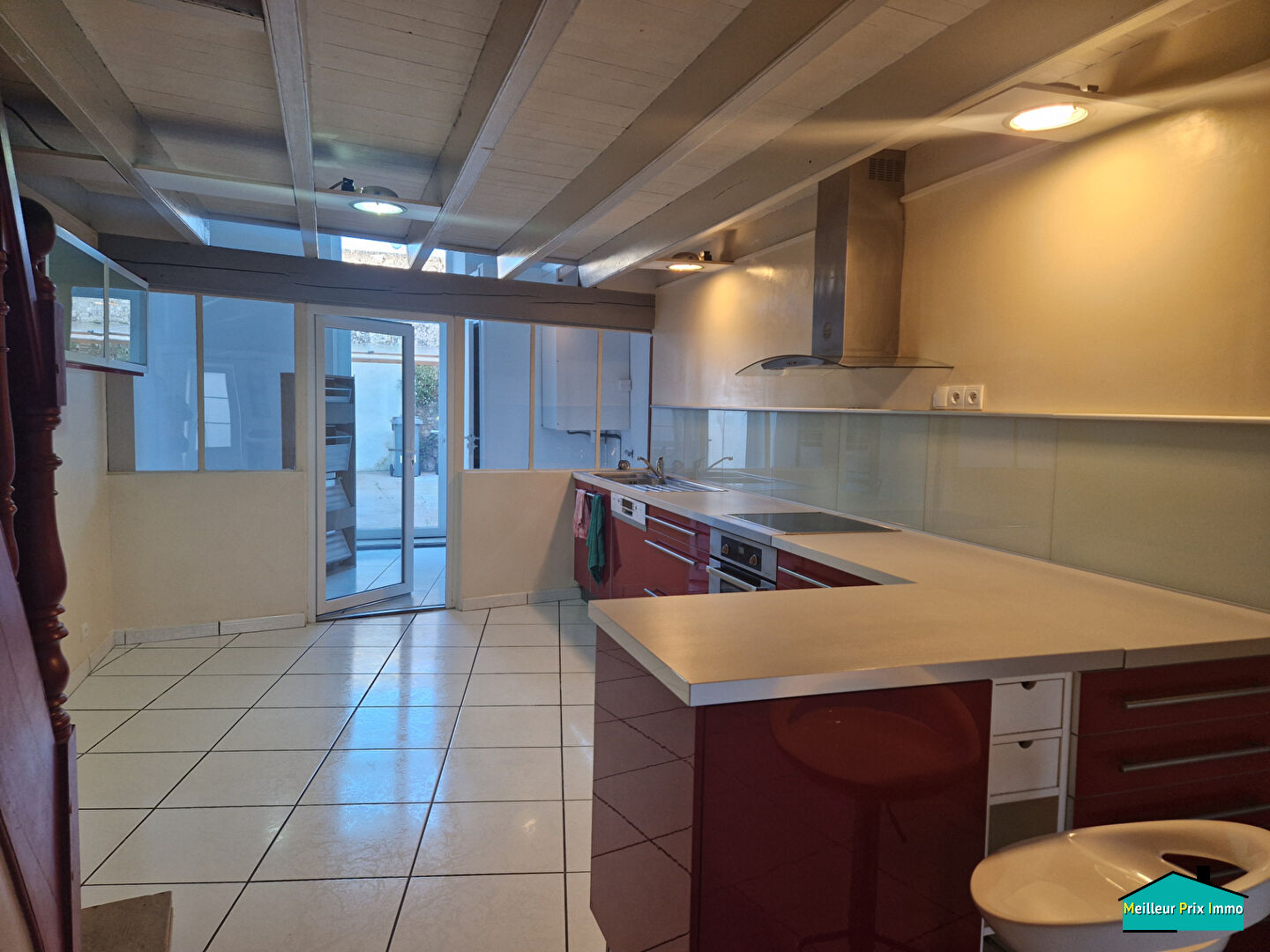 Au rez-de-chaussée vous trouverez une belle pièce de vie avec poutres apparent...