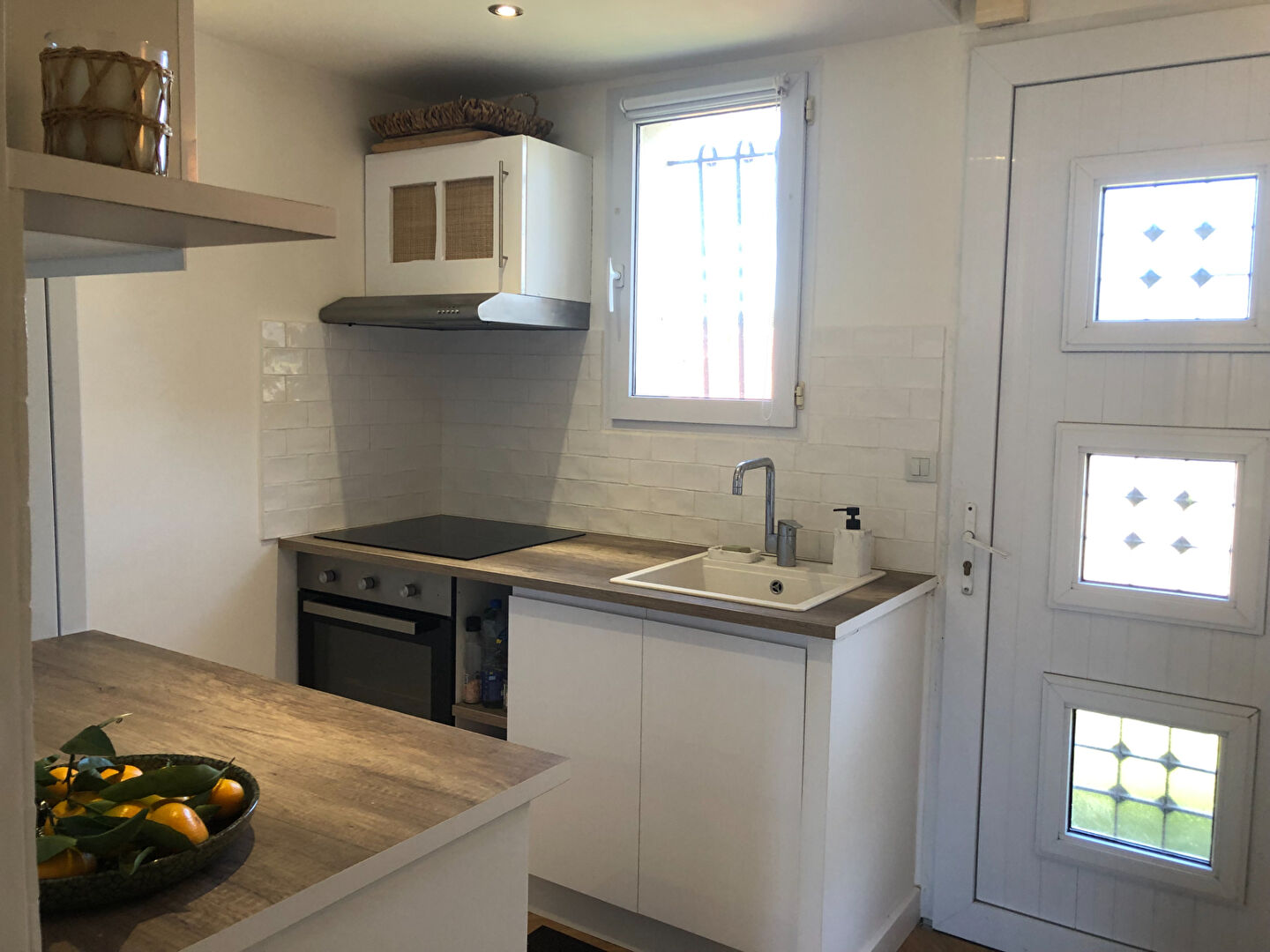 Cuisine aménagée et équipée : avec hotte, plaque de cu...