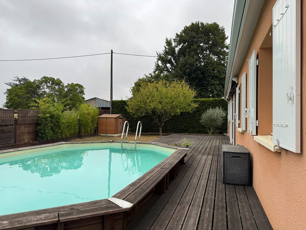 Agréable maison de plain pied de 104m² habitables sur un terrain clos sans vis à vis de 769m² avec aire de stationnement, terrain de pétanque et piscine bois 6mx4.