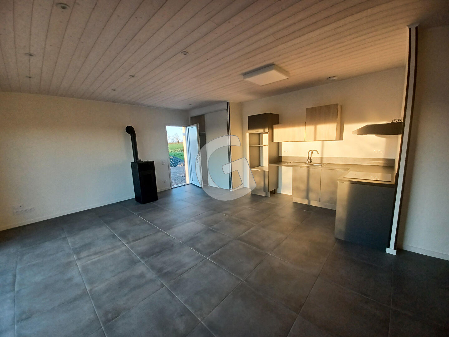 Maison neuve à étage de 95 m2 en campagne comprenant: RDC: séjour salon avec coin cuisine aménagée ( plaque de cuisson, hotte), dégagement, 1 chambre, salle d'eau, WC, buanderie. garage. Etage: palier, 2 grandes chambres avec coin dressing, salle d'e...