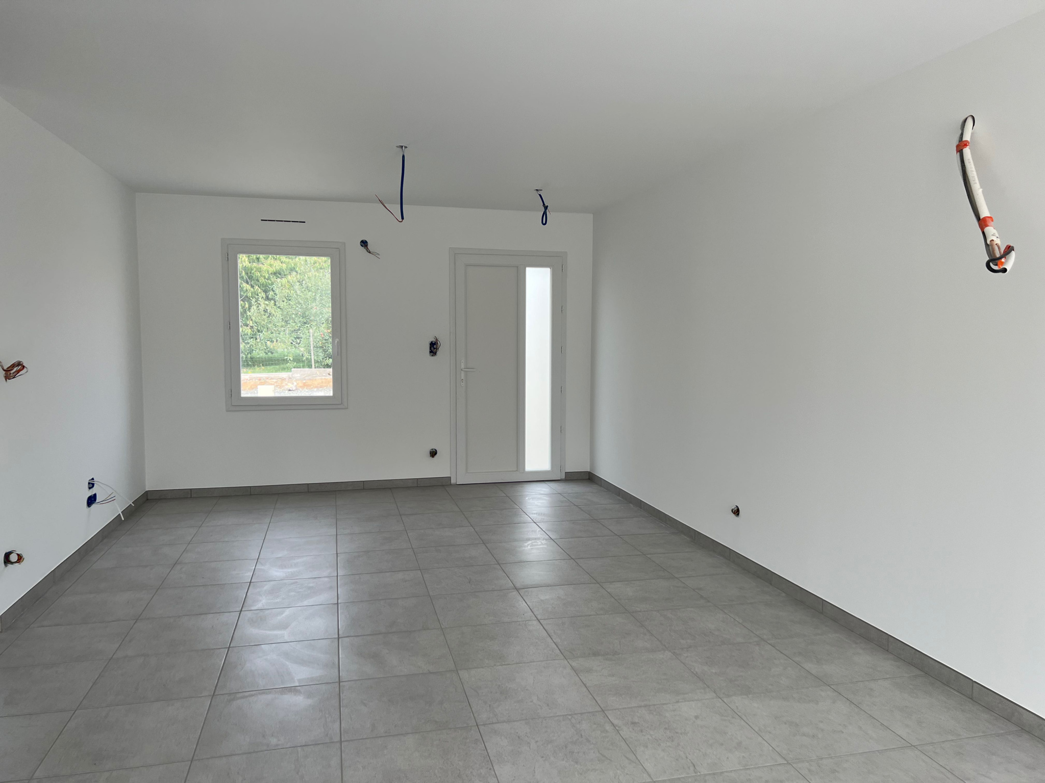Maison d'environ 71.67m2 de plain-pied, état neuf, comprenant : pièce de vie ( salon, salle à manger, cuisine aménagée), 2 chambres, salle d'eau. Garage de 18m2.