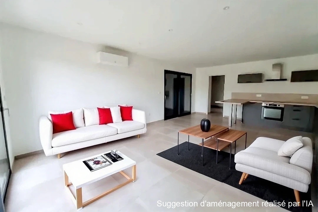 Au rez-de-chaussée, vous trouverez une entrée avec deux placards, une cuisine équipée ouverte sur une pièce de vie lumineuse, une suite parentale avec wc et salle d...