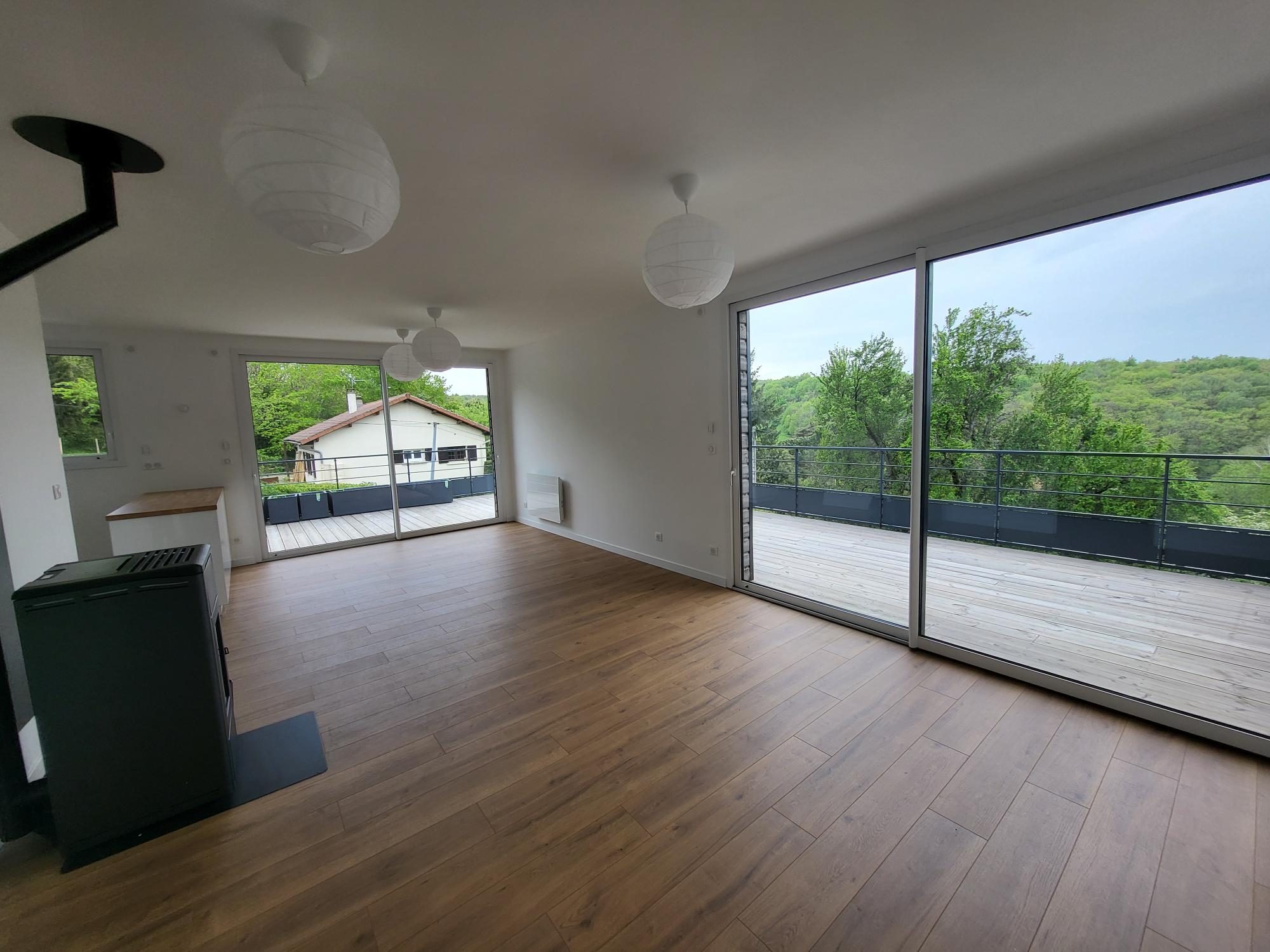 Belle maison contemporaine en bois T4 MEUBLÉE de 82 m² environ située au calme, sortie Vienne direction Jardin. Une vaste pièce de vie lumineuse, avec cuisine ouverte équipée, donnant sur la terrasse (40 m²) et une jolie vue dégagée. 3 chambres dont une avec p...