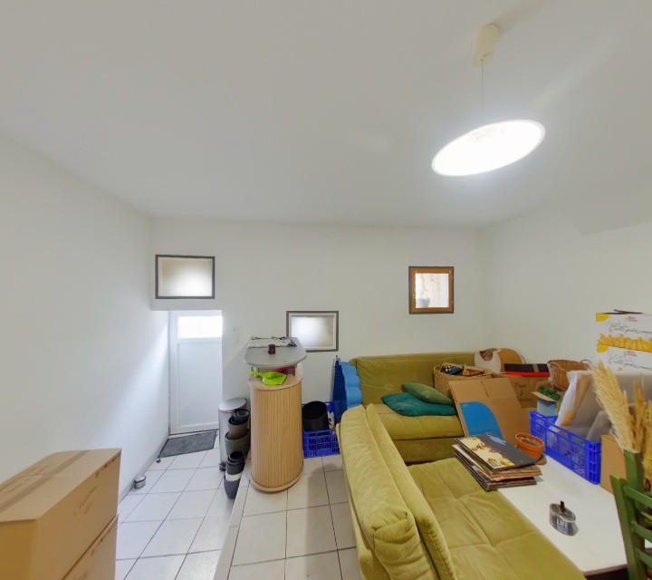 Petite maison en plein centre-ville comprenant : Séjour, cuisine, salle d'eau/wc. A l'étage : une chambre et un bureau. Terrasse privée, cour commune.