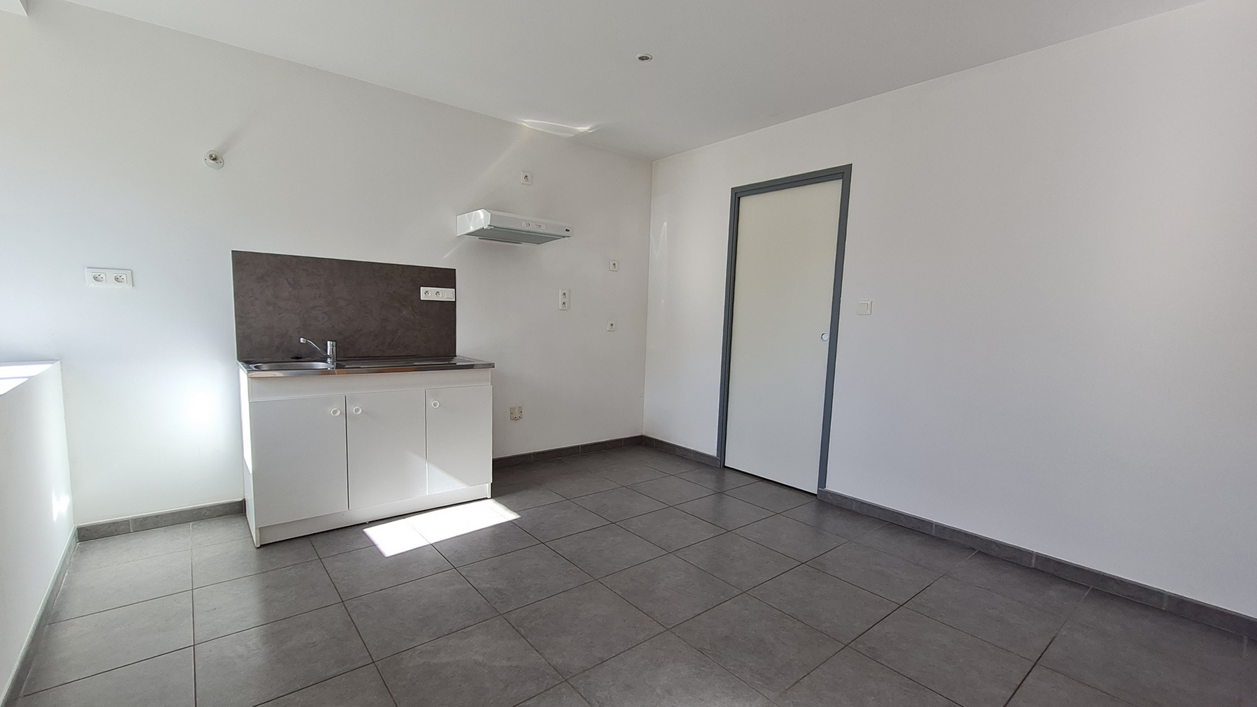 Maison en campagne comprenant au RDC : une pièce de vie avec cuisine aménagée, WC. A l'étage : une chambre, salle d'eau/WC. Véranda. Terrain avec garage.