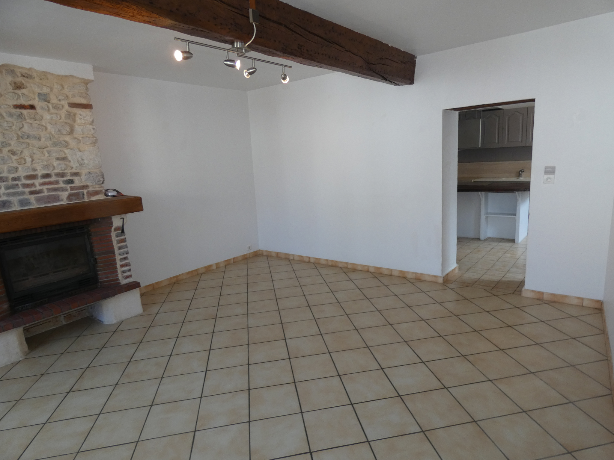 Maison de ville EPINEUIL CENTRE comprenant entrée, grande pièce de vie avec cuisine ouverte (40m2) dégagement, WC avec coin buanderie, à l'étage, couloir desservant deux chambres et salle d'eau avec WC.