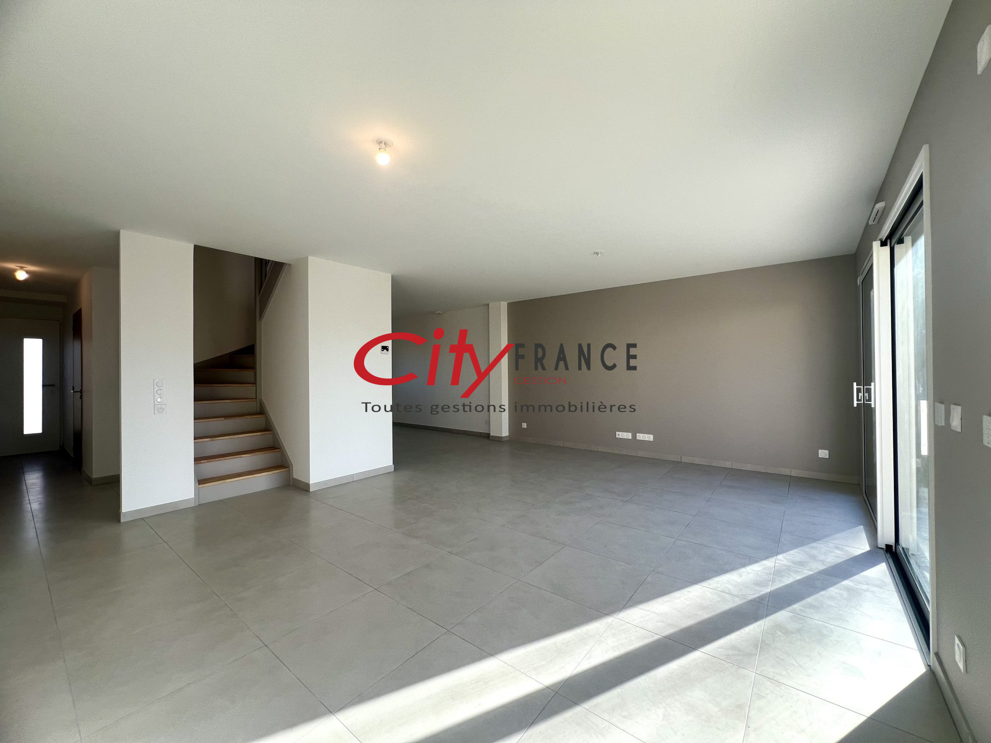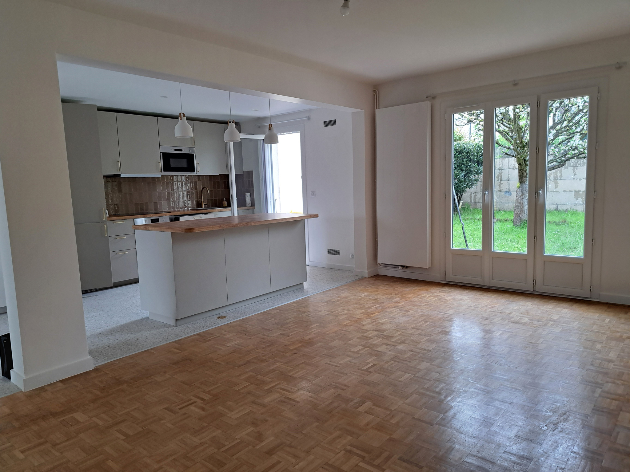 Dans une petite copropriété pavillonaire, une Maison à louer meublée au calme en très bon état de 99 m2 habitables, comprenant : une entrée, un local technique/placard, une cuisine ouverte sur pièce principale avec ilot central, trois chambres, deux WC, une sa...