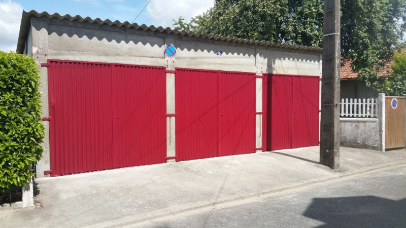Garage fermé par 2 portes en tôle, sol ciment, murs et plafond en fibro 4m85 x 2m50 hauteur 2m25