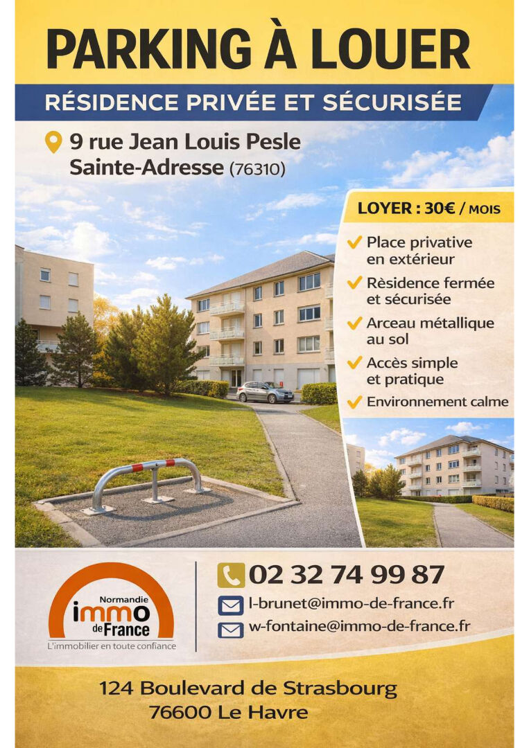 Location Place de parking sur Sainte-Adresse dans une résidence sécurisée avec gardien.