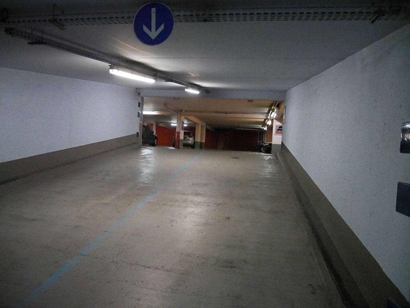 Parc de stationnement accessible par escalier ou ascenseur .