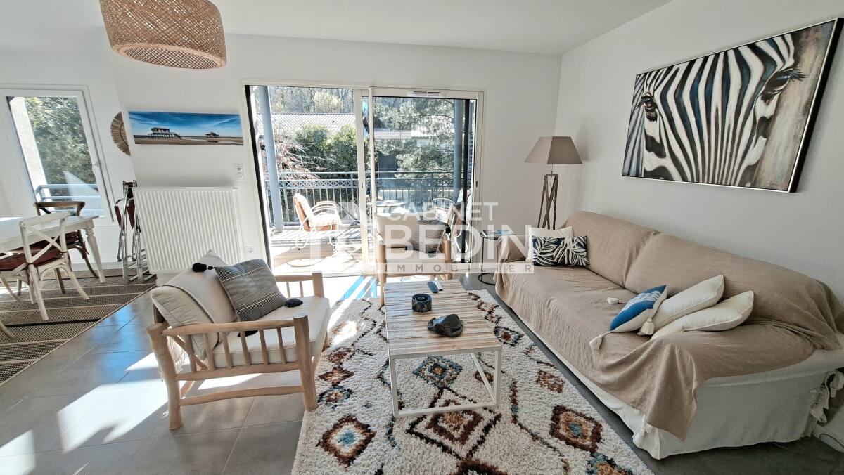 Exclusivité CABINET BEDIN - ARCACHON - T3 avec terrasse et box fermé. Situé dans le secteur très recherché de l?Aiguillon, à deux pas des commerces et de la plage, cet appartement offre un cadre de vie idéal, alliant confort et emplacement privilégié. <BR&g...