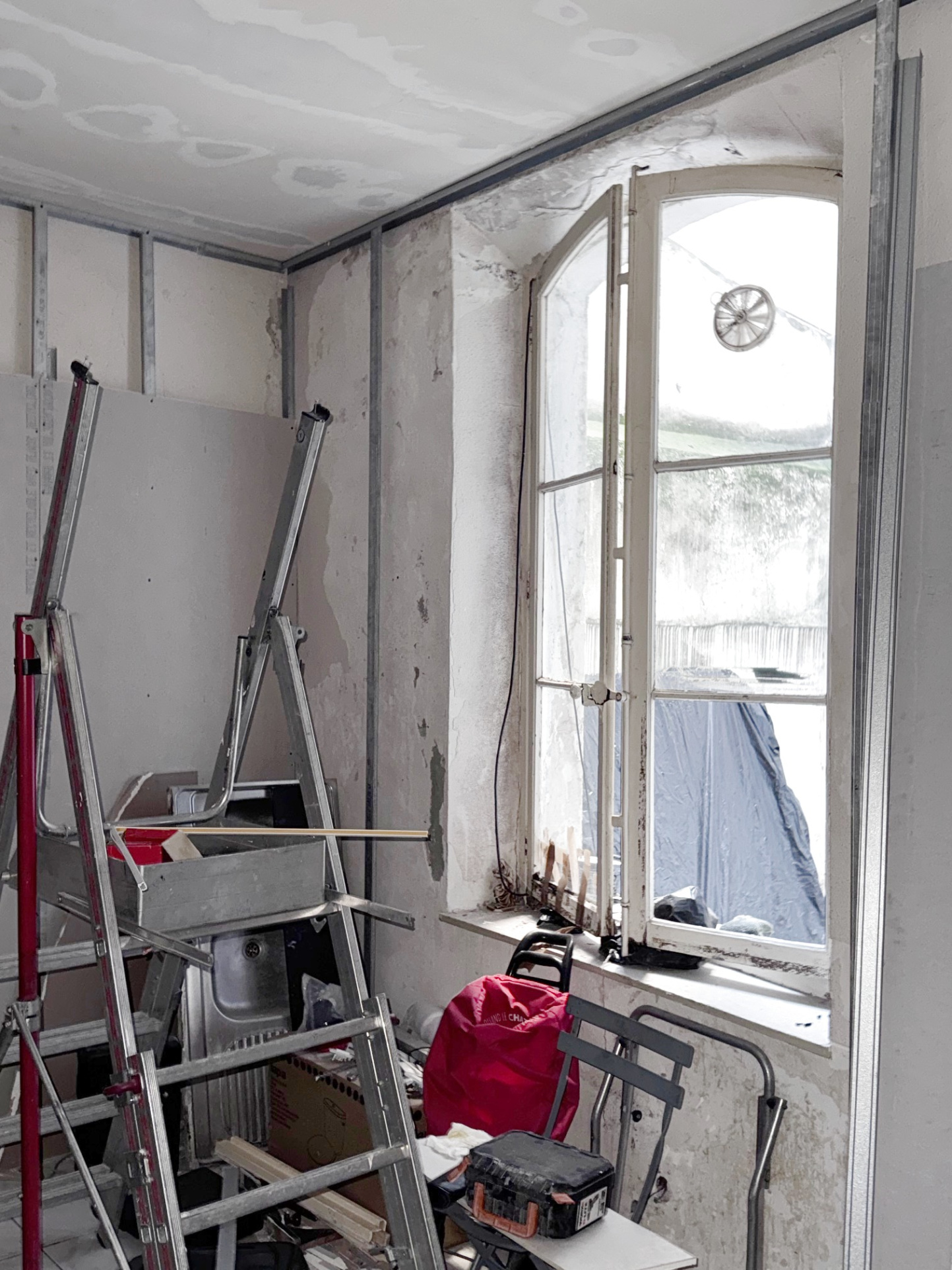 Appartement avec large fenêtre coulissante double vitrage, entièrement isolé, cuisine et sanitaires neufs. L'habitation est comp...