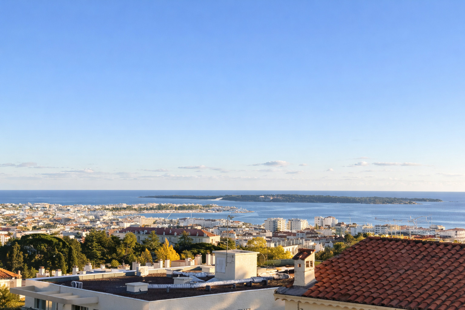 En plein centre ville, face à la mer, duplex de 2 pièces en dernier étage, offrant une vue imprenable sur la Méditerranée et l'Estérel.