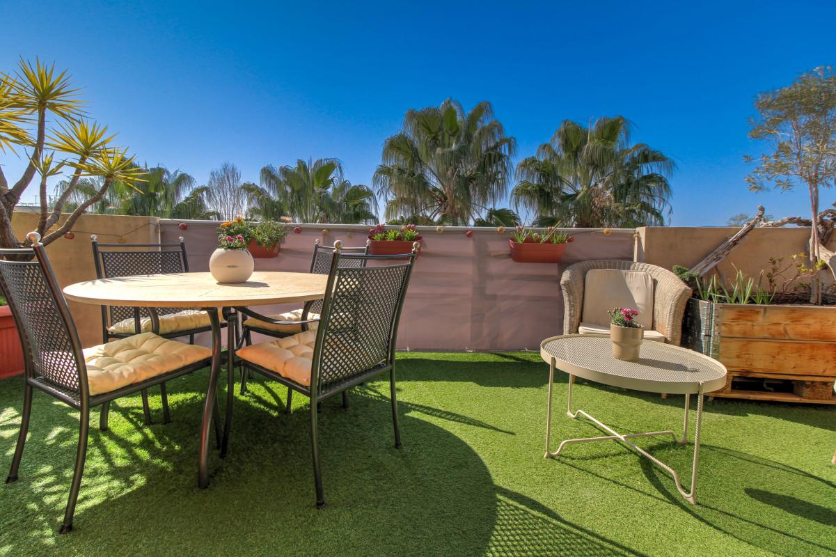 Cuisine américaine toute équipée avec un séjour exposé est donnant sur un très grande terrasse.