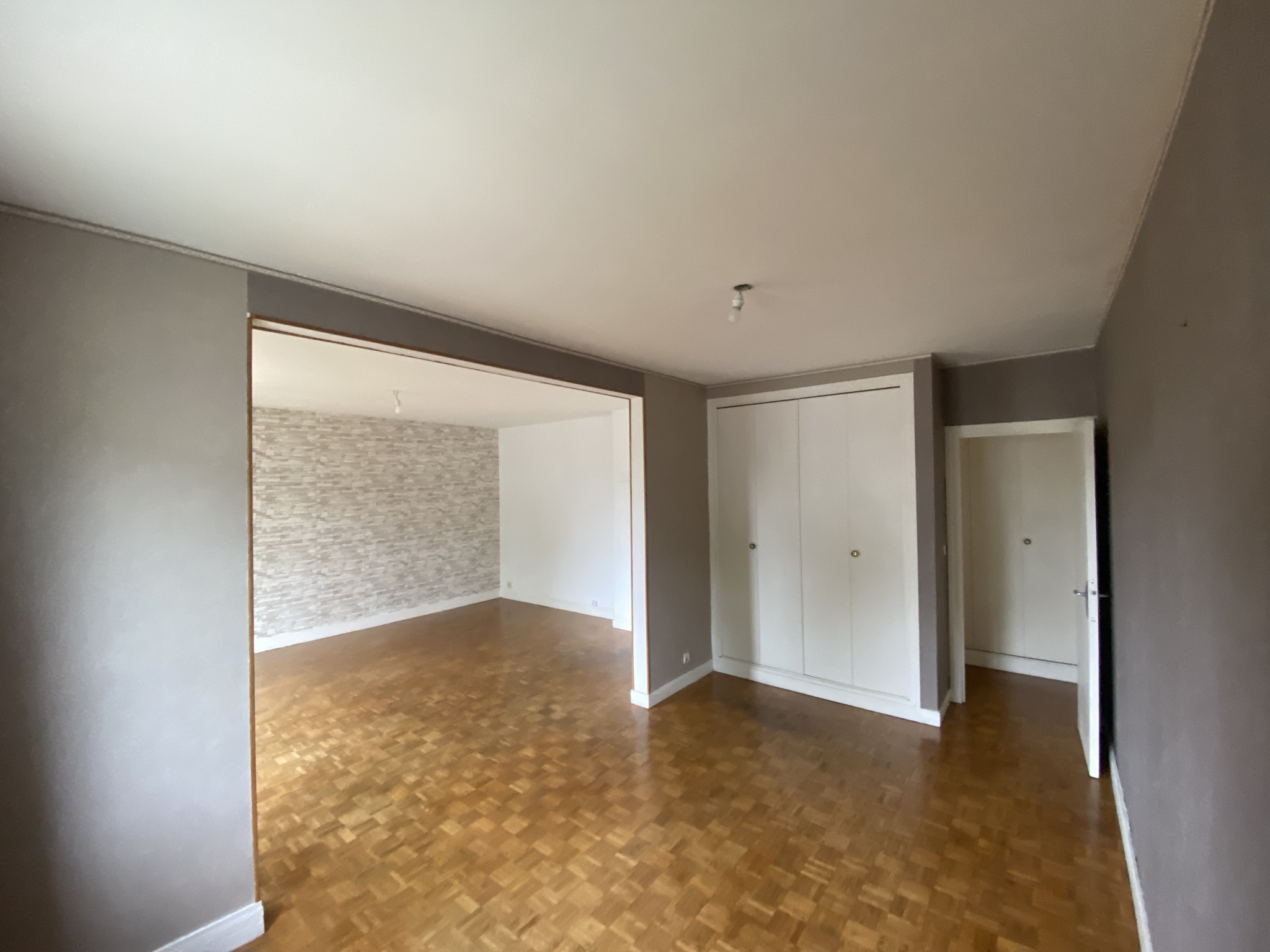 Entrée avec placards, dégagement, double séjour parqueté ouvrant sur balcon, cuisine...