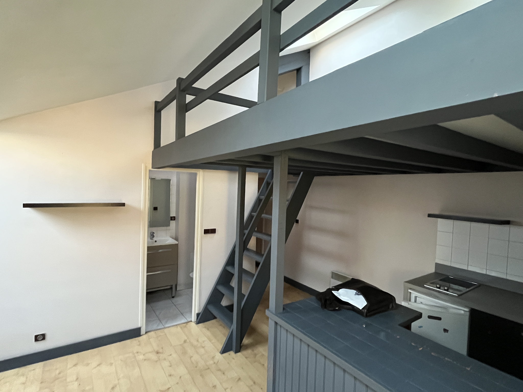L'appartement se compose d'un séjour, d'un coin kitchenette et d'une salle d'eau avec WC.